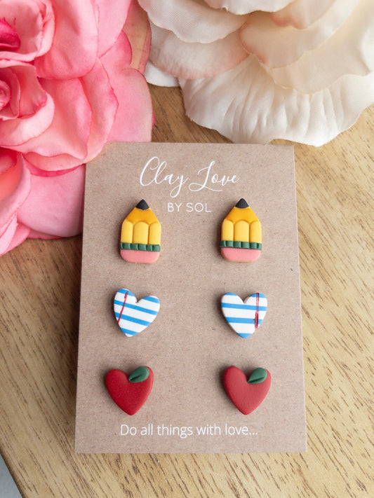 Pencil, Notebook and Apple Hearts Trio, perfect for teachers or teacher gifts!