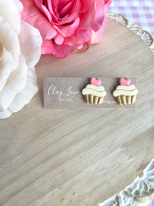 Valentine’s Day Collection-Cupcake Studs with Resined Heart Toppers